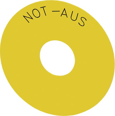 Das Unterlegschild ist ein Bezeichnungsschild für Befehlsgeräte, speziell für Not-Halt-Pilzdrucktaster.