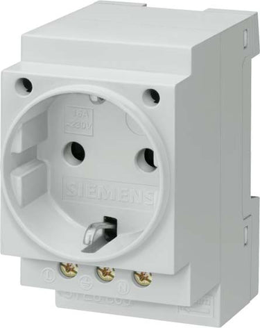 Schutzkontaktsteckdose (Typ F) 16A nach DIN VDE 0620 für Verteilereinbau Schaltgeräte zur Hutschienen-Montage für das Steuern elektrischer Anlagen. Die Schaltgeräte zur Hutschienenmontage von Siemens als wichtiger Bestandteil der SENTRON Komponenten für die Elektroinstallation werden in Steuerschränken und Verteilern zum Ein-